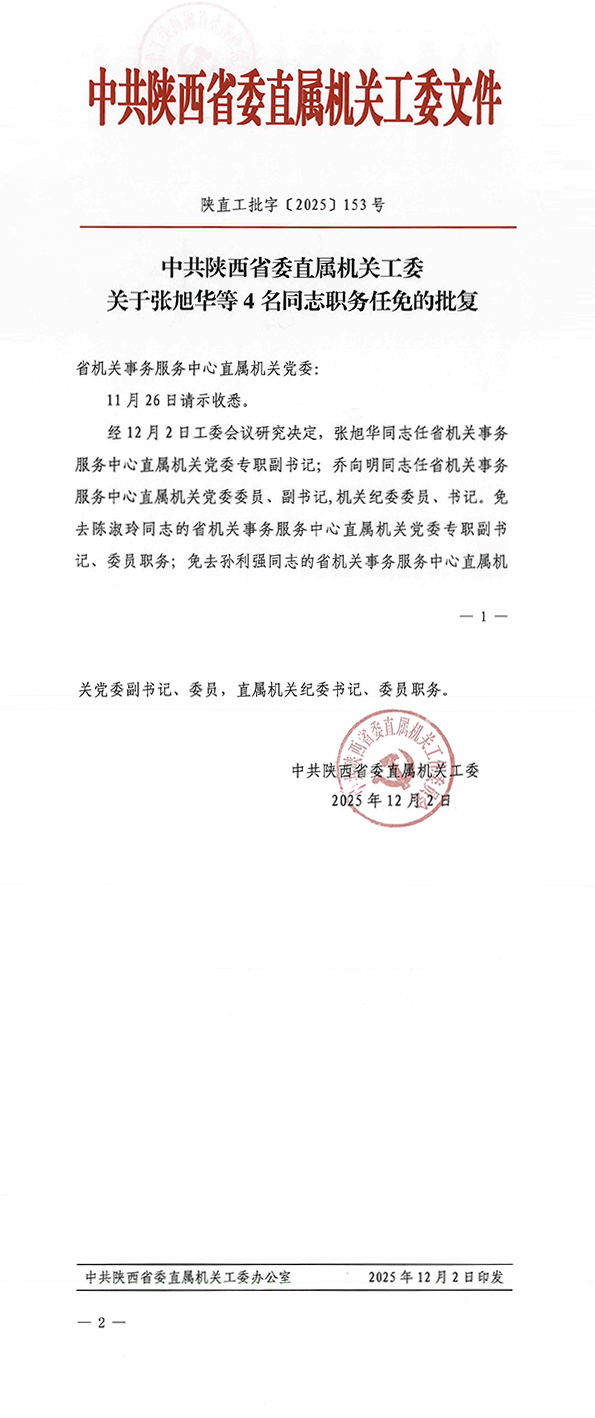 中共陕西省委直属机关工委关于张旭华等4名同志职务任免的批复