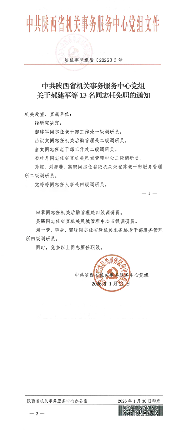 中共陕西省机关事务服务中心党组关于郝建军等13名同志任免职的通知